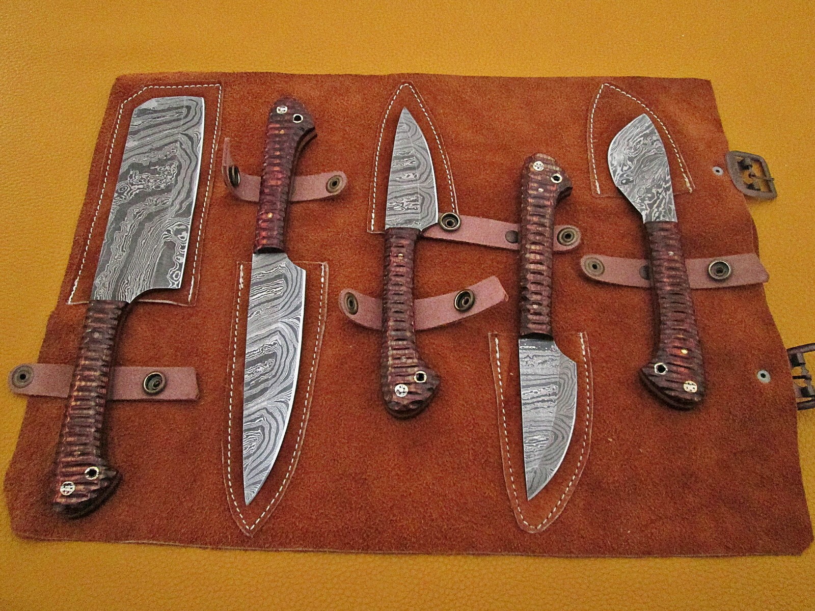 5 Pieza Conjunto De Cuchillos De Cocina Ceja Jigged Escala En General 42 De Largo Vaina De Rodillo De Gamuza Ebay